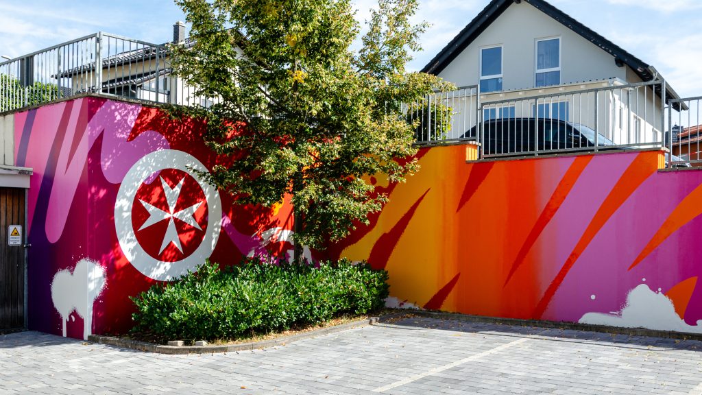 Im schönen Spätsommer hatten wir das Vergnügen, dieses schöne DOPAMINE-Mural für das Johanniter-Stift in Großen-Buseck zu malen.
